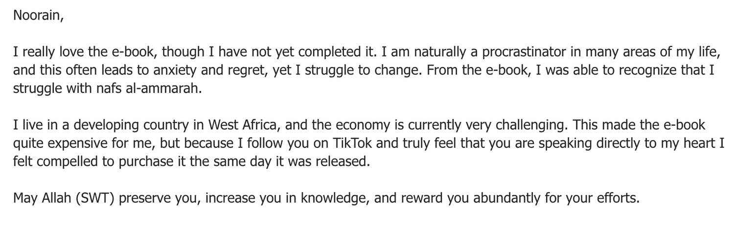 Have questions? Email: noorain@noorainhuma.com